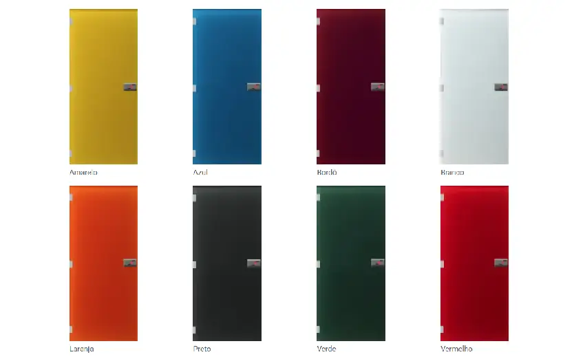 ✅Portas Alcoplac Cristal: Privacidade com design inteligente em 8 cores vibrantes e serigrafia plena.